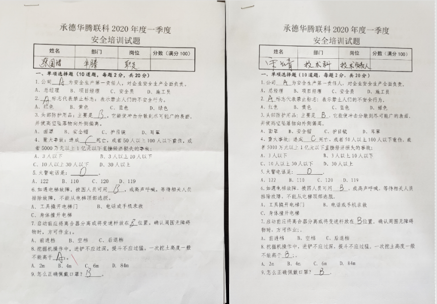 為增強(qiáng)華騰聯(lián)科公司員工安全意識(shí),高效有序推進(jìn)疫情防控和復(fù)工復(fù)產(chǎn)工作,公司安全科牽頭制定了《項(xiàng)目管理安全手冊(cè)》、《公司年度安全計(jì)劃》、《企業(yè)安全生產(chǎn)應(yīng)急預(yù)案》、《施工現(xiàn)場(chǎng)安全生產(chǎn)事故應(yīng)急救援預(yù)案》、《防疫安全責(zé)任書》、《新型冠狀病毒肺炎防疫應(yīng)急處置方案》、《防疫專項(xiàng)承諾書》和復(fù)工審批流程,并通過線上、線下培訓(xùn)和考試的方式,提升了員工安全防范意識(shí)和安全管理能力,為集團(tuán)公司“質(zhì)量提升年”活動(dòng)的安全質(zhì)量提升層面提供保障。